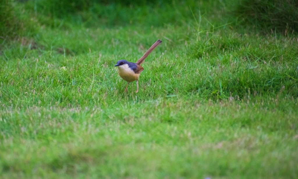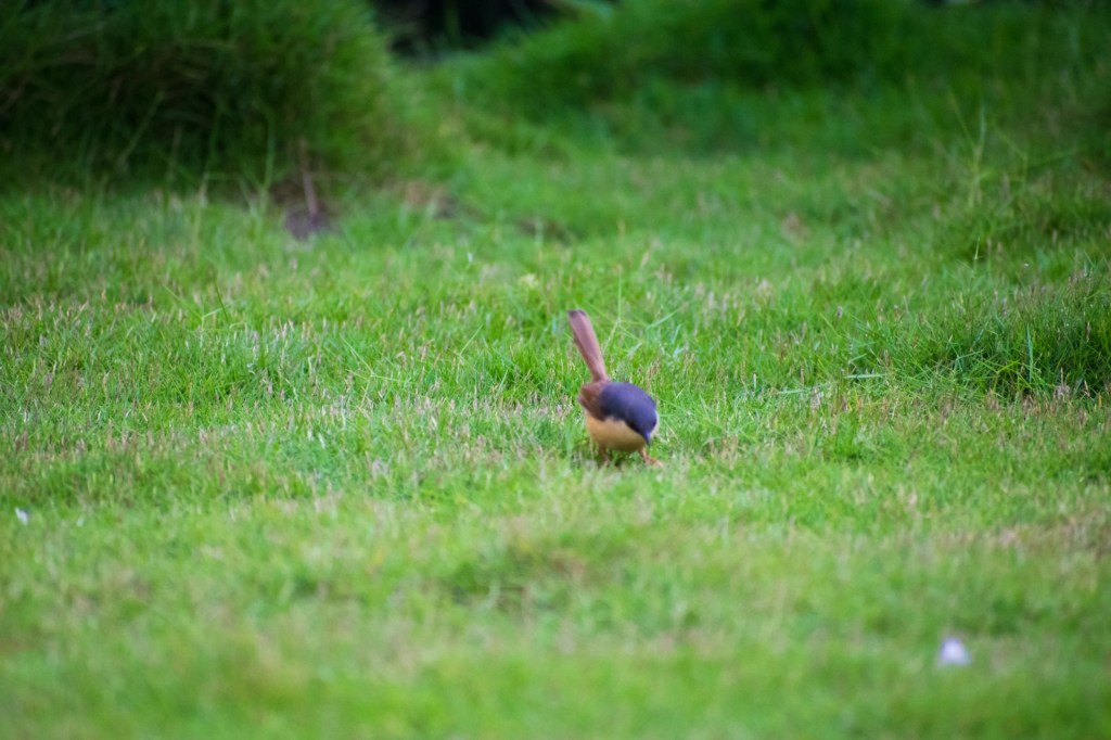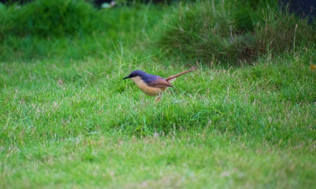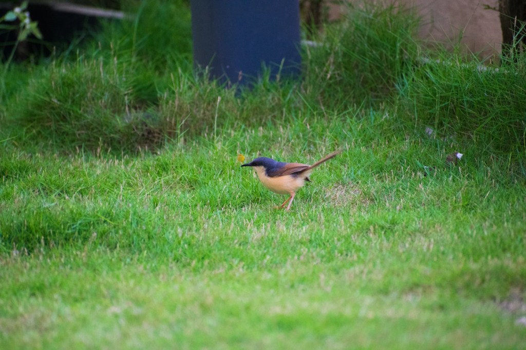 We sat on her balcony, catching up, when this little bird flew in. Maybe it was attracted by the grass planted there and the little pots of various plants. I was grateful of having brought the camera and my zoom lens with me.