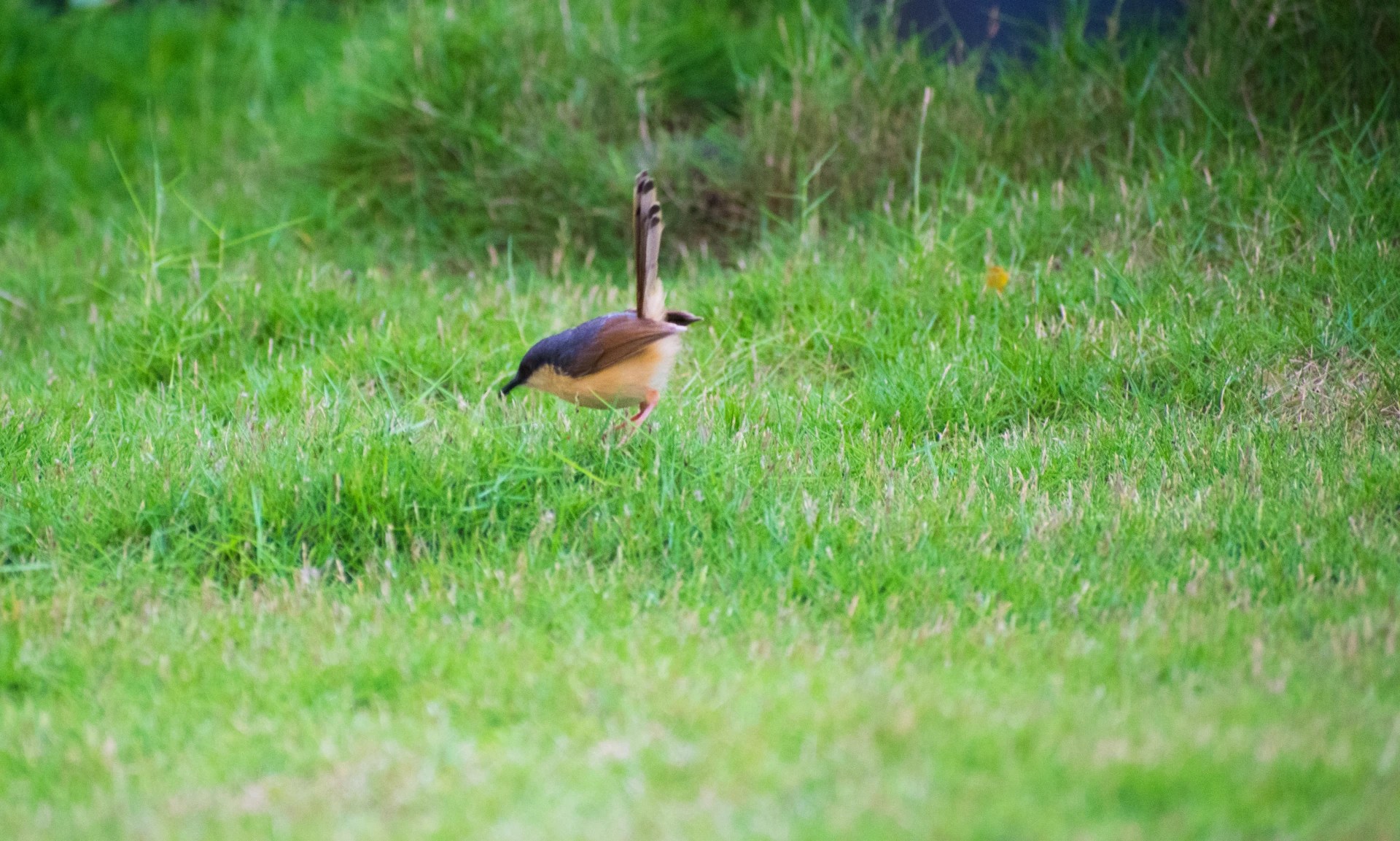 The ashy prinia or ashy wren-warbler (Prinia socialis) is a small warbler in the family Cisticolidae. This prinia is a resident breeder in the Indian subcontinent. Ranging across most of India, Nepal, Bangladesh, eastern Pakistan, Bhutan, Sri Lanka and western Myanmar. It is a common bird in urban gardens and farmlands in many parts of India. Its small size, distinctive colors and upright tail make it easy to identify.